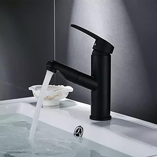 Lavish Series Rust Free Bathroom Sink Faucet with Pull Out Sprayer, Matte Black Bathroom Faucet | Single Handle for Temperature Control Stainless Steel, Utility Sink Faucet Black & Steel