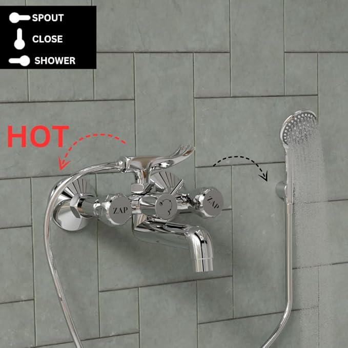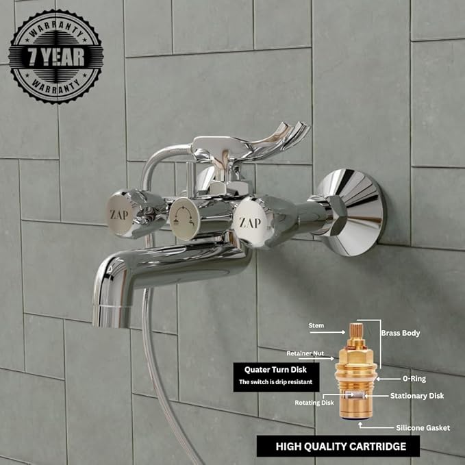 Constructed from 100% solid brass, the ZAP Continental Series 2-in-1 Wall Mixer with Clutch offers superior strength, corrosion resistance, and durability. Ideal for Indian bathrooms, it is built to withstand high water pressure and everyday usage.