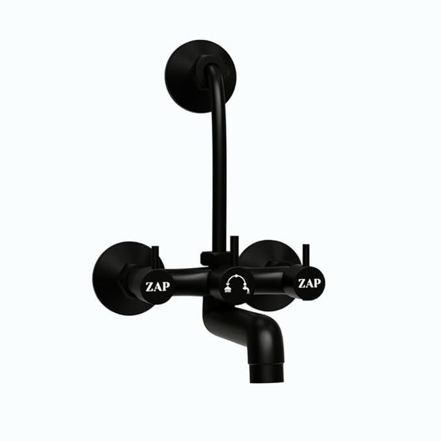 ZAP Elixir 2-in-1 Full Brass Wall Mixer for Bathroom | Matte Black Finish | Includes Long Bend Pipe for Overhead Shower | Durable & Rust Resistant | Wall-Mounted Fitting