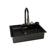 ZAP Waterfall 304 SS Kitchen Sink Set with Pull-Out Faucet, Chopping Board, Glass Rinser, Soap Dispenser & Strainer | Multi-Functional Farmhouse Sink with Accessories | Black, 24x18 Inch