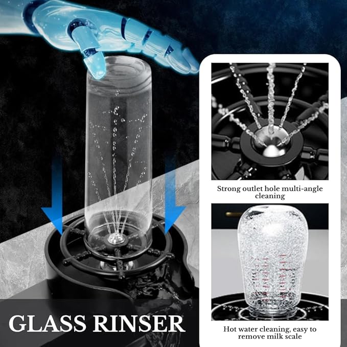 Built-in glass rinser helps quickly clean bottles, glasses, and tumblers with powerful water pressure—ideal for busy kitchens and households.