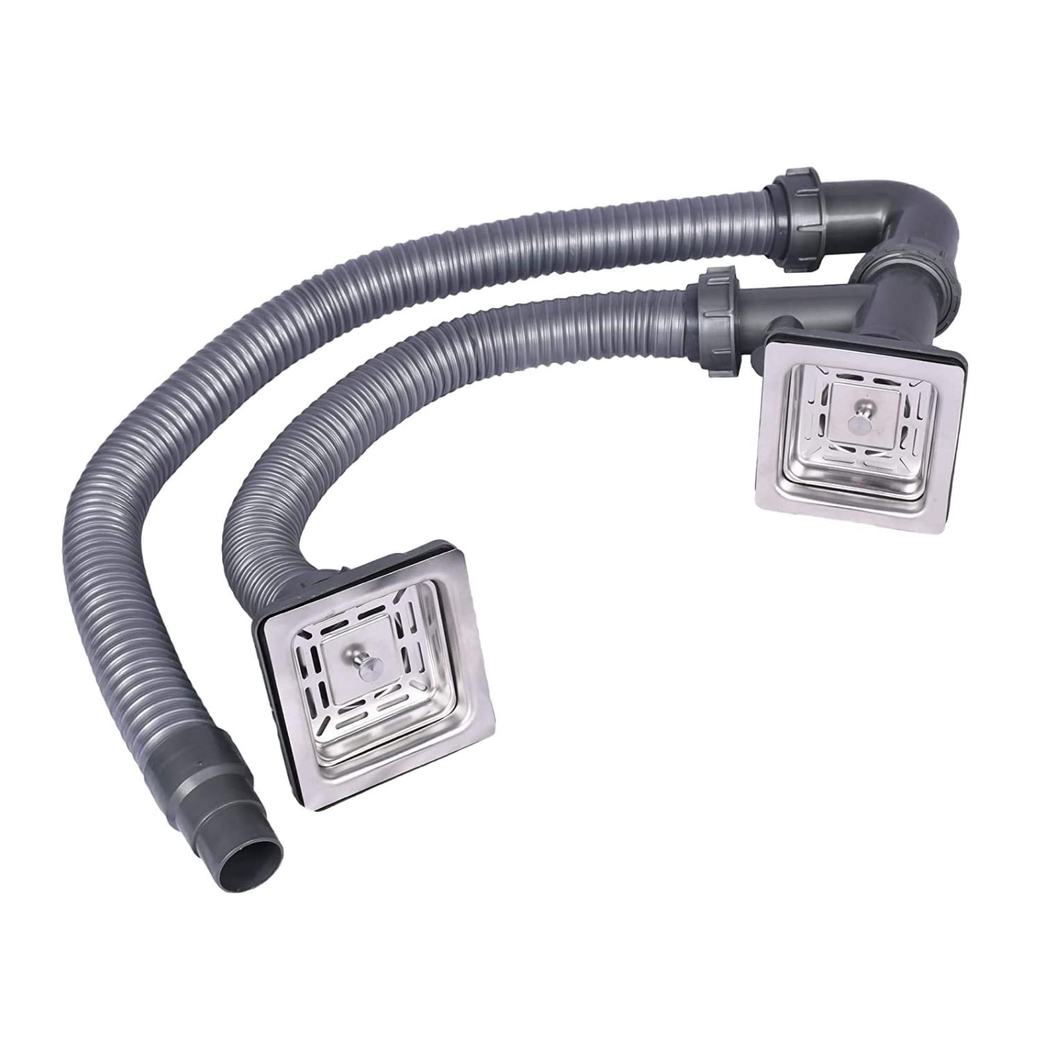 • Smooth water drainage system with filter basket prevents clogging and overflow.