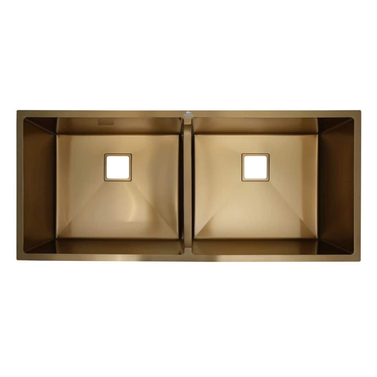 1x ZAP Double Bowl Kitchen Sink – 45x20 cm (Gold Finish)