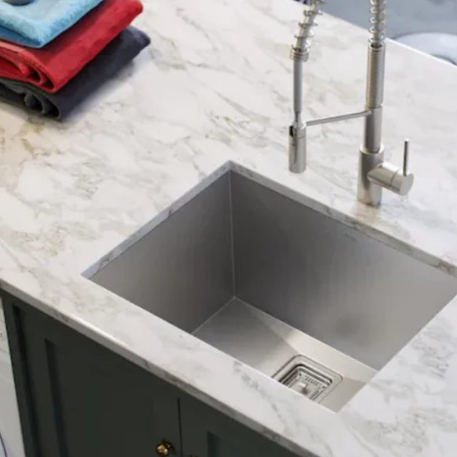 Zap Kitchen Sink Single Bowl 18x16 cm Silver Matt Finish | 304 Stainless Steel | With Sink Drainer Basket, Steel Waste Coupling & Waste Pipe | Smooth Drainage | R Angle Corners | Noise Reduction Pads