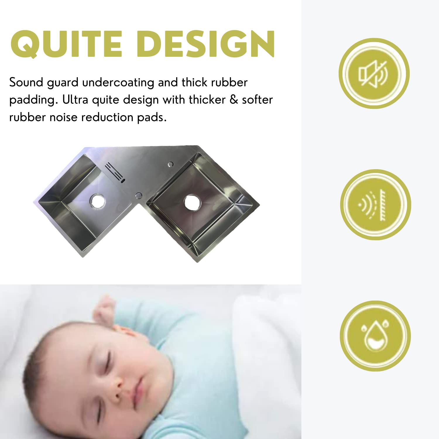 Equipped with smooth edges, deep basin, and noise-dampening technology for a quiet and efficient kitchen experience. Ergonomic slope ensures fast water drainage and prevents standing water.