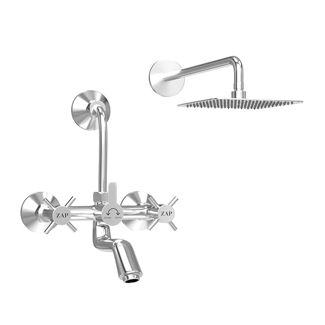 Upgrade your bathroom with the ZAP Caster Series 2-in-1 Brass Wall Mixer, designed for smooth water flow, long-lasting durability, and a premium chrome finish. Equipped with hot and cold knobs, a 125mm bend pipe, overhead shower set, and faucet cleaner, this wall mixer tap set delivers comfort, convenience, and rust-resistant performance for modern Indian bathrooms.