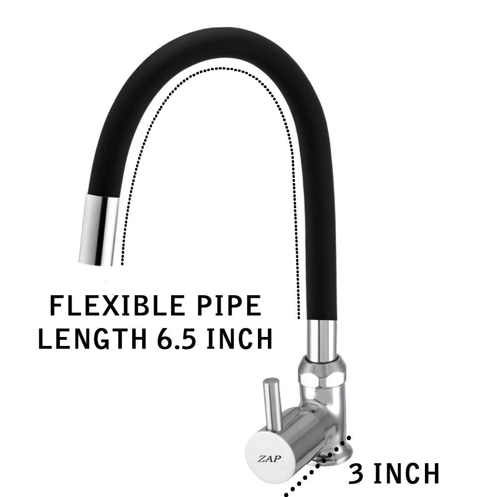 ZAP Pluto High Grade Brass Kitchen Tap | Swan Neck Design | 360° Swivel Spout | Single Lever | Flexible Silicone Spout | Rust-Proof | Hot & Cold Mixer | Chrome Finish