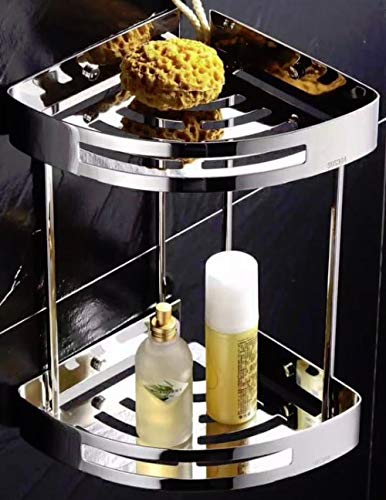 304 Grade Stainless Steel Double Layer Bathroom Corner Shelf Triangular Wall Mount Chrome Finish Shelves for Bathroom Accessories - Stainless Steel is backordered and will ship as soon as it is back in stock.