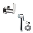 Bathroom Combo of Bolt Series Health Faucet with Stainless Steel Tube and Wall Hook and Opel Angle Valve Wall Mounted for Bathroom