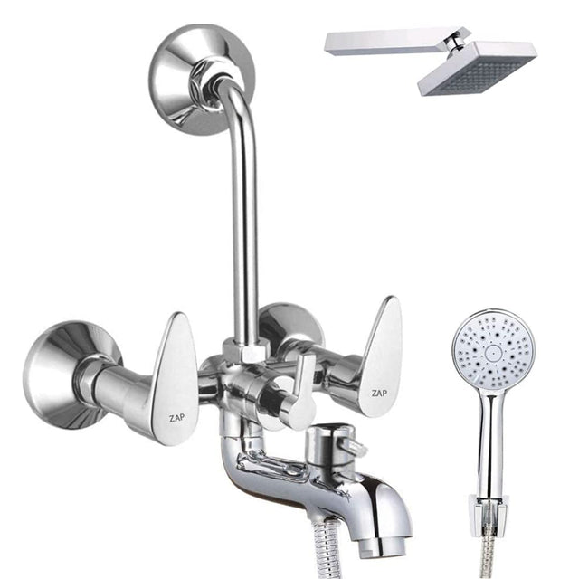 Breeza Series 100% High Grade Brass 3 in 1 Wall Mixer with Crutch & Multi Flow Hand Shower with 1.5 Meter Flexible Tube (Chrome) (Premium) - Chrome / Premium is backordered and will ship as soon as it is back in stock.