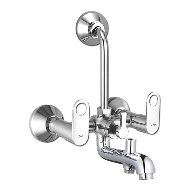 Geo Series 100% High Grade Brass 3 in 1 Wall Mixer With Provision For Over Head Shower and 125mm Long Bend Pipe (Chrome)