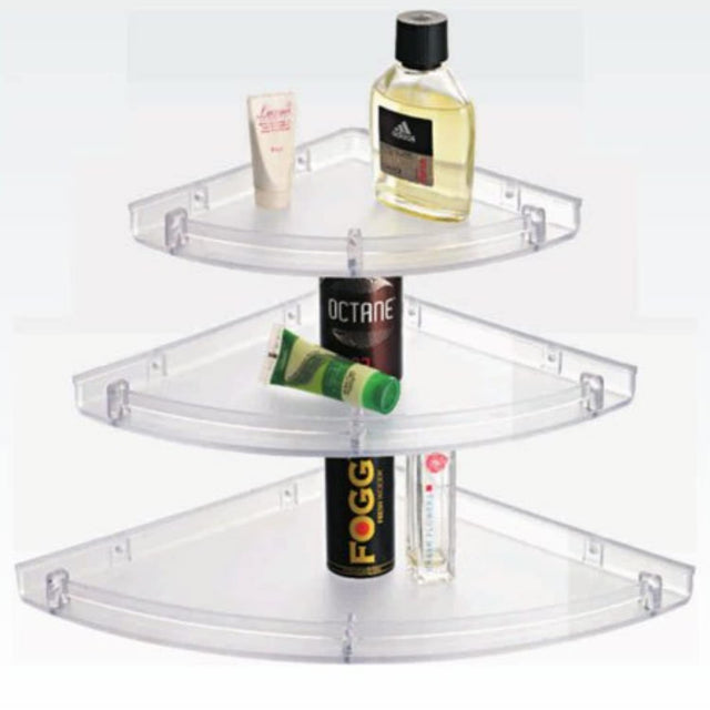 Hexa Series Premium Acrylic Bathroom Corner Shelf Super Clear, Corner Shelves for Home Decor - One Set (3 Pieces)