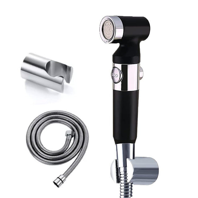 Ultra ZX1034 Health Faucet Handheld Toilet Jet Spray with 1.5 m Stainless Steel Tube and Wall Hook-Chrome Finish Bidet with Hose and Holder/Clutch Set (Full Black)